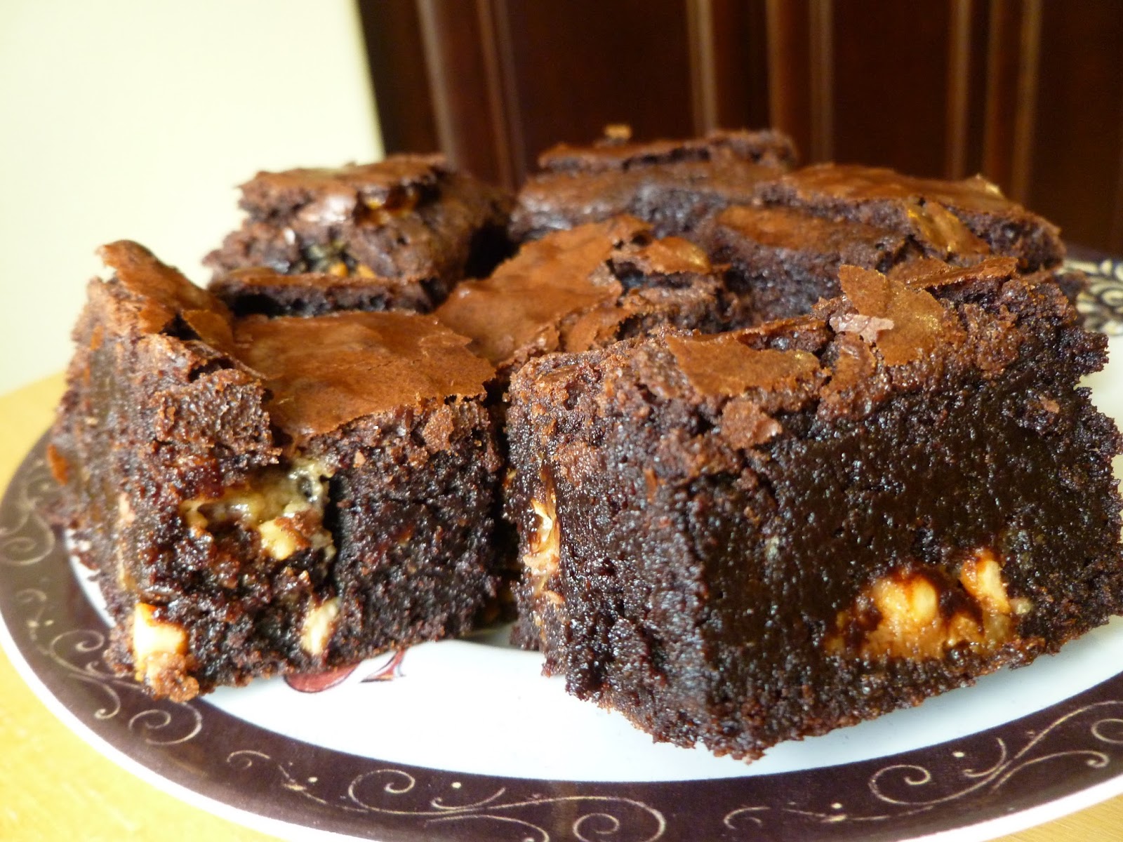 Which is exactly what this is. The original recipe called for a full 9 x 13 pan of brownies but I didn't need that many so I cut the recipe in half and baked it in an 8" x 8" pan. Which is what I usually do when cutting a 9 x 13 recipe in half since I didn't want the brownies to be too thin. For these brownies, however, I think I could've gotten away with using a 9" x 9" pan. The 8" pan made the brownies a bit thick. Nothing wrong with that but you need to be careful about baking brownies that are too thick. The corners and the top will be done first and you risk overbaking a crust on the top and drying out the corners while the middle is still raw.