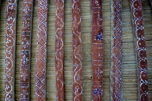 One feature of the old mud house I bought that my Omani husband doesn't like it that someone tried to "fix it" but installing skinny wooden beams, instead of exposed palm trunks which might have been skinned and painted in a more rustic fashion, with white Arabic calligraphy, or simplistic floral motifs.